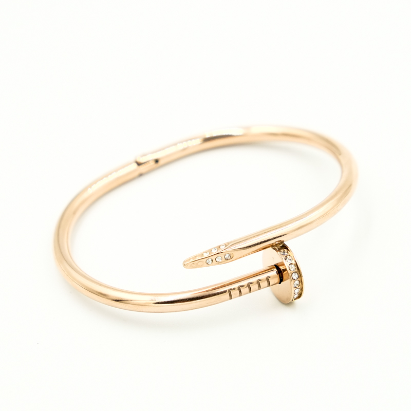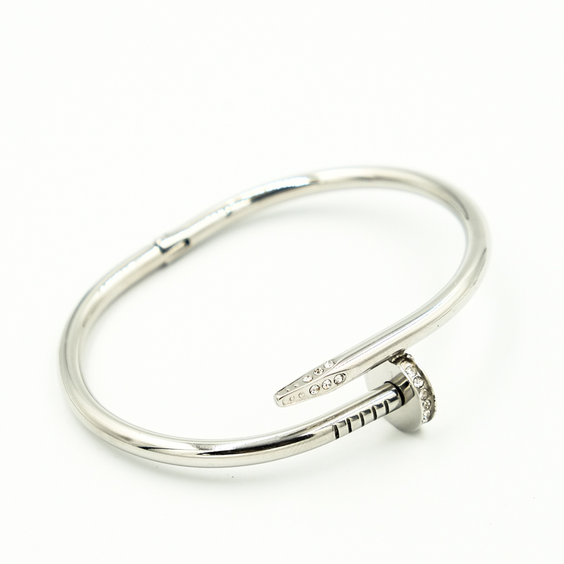 Γυναικεία χειροπέδα από ατσάλι το οποίο είναι ανθεκτικό και ανοξείδωτο, στολισμένη με πέτρες ζιργκόν. Ενα βραχιόλι που προορίζεται για κάθε γυναίκα που θέλει να κλέψει τις εντυπώσεις. Διατίθεται σε δύο χρωματισμούς: ΑΣΗΜΙ και ΡΟΖ ΧΡΥΣΟ.