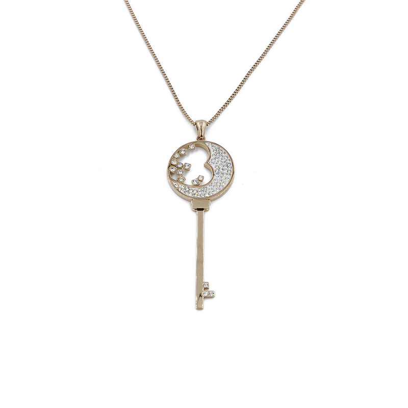 Κρεμαστό με απεικόνιση κλειδί και καρδιά στολισμένα με πέτρες ζιργκόν,σε χρώμα ροζ χρυσό, απο ατσάλι. Ένα πολύ ιδιαίτερο κόσμημα, που θα λατρέψει κάθε γυναίκα. Ένα μακρύ αξεσουάρ που ταιριάζει με πολλά ντυσίματα!